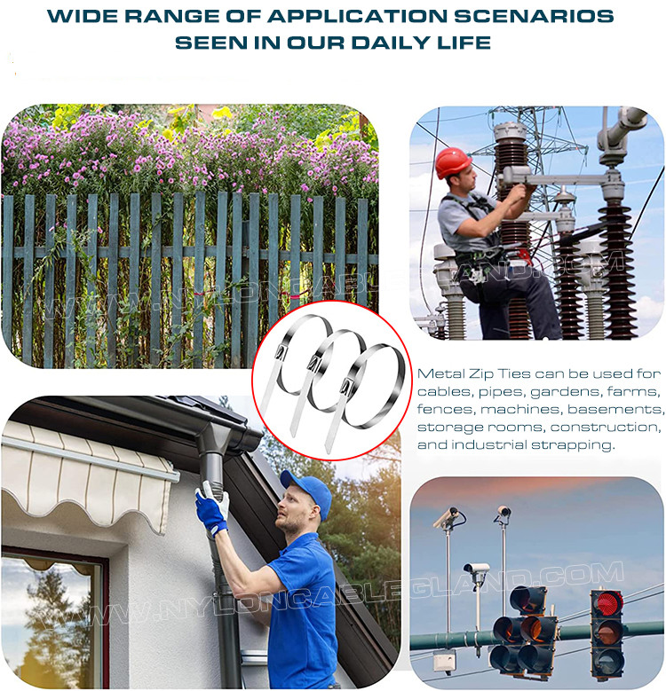 [Facile da usare]Non sono necessari strumenti speciali, basta mettere la coda della cravatta di blocco inossidabile nel foro di blocco sulla testa della cravatta;I denti di blocco diventeranno sempre piu' stretti ogni volta che tirerai., quindi fissare il nastro del cavo alla lunghezza richiesta per bloccare l'oggetto in posizione molto saldamente, infine tagliare l'eccesso con un paio di pinze a naso inclinato.