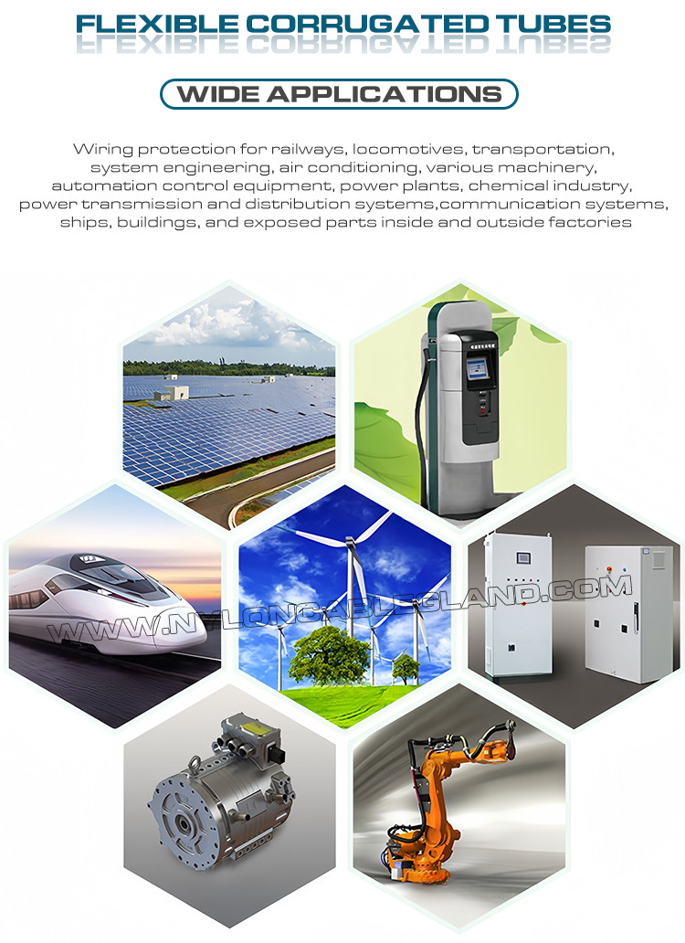 Condotto elettrico colorato in poliammide PA, AD15.8 tubo ondulato in nylon 12mm tubo flessibile in polimero per l'imbracatura del filo è un tipo di filo di filo leggero con fili di tubo ondulato con pareti interne ed esterne ondulate sviluppato da PA (poliammide)Il condotto ondulato in plastica presenta le caratteristiche di una buona flessibilità, resistenza alla distorsione, buone prestazioni di piegatura,resistenza agli acidi, lubrificanti, refrigeranti, ecc., lucentezza superficiale, resistenza all'attrito.