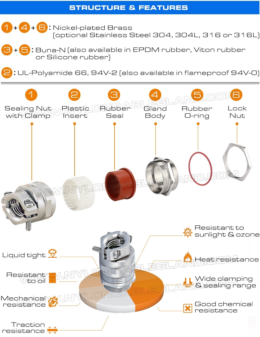 | Nome del prodotto: | Pressacavi in ottone, filettatura NPT, IP68, NPT1/4"~NPT2", con scarico della trazione esterno |
