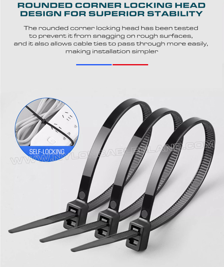 La testa della fascetta a doppia testa è progettata con due fori indipendenti con denti opposti. Presenta un foro principale attraverso cui far scorrere inizialmente la fascetta prima di agganciare il secondo anello. Il secondo anello può anche fungere da dispositivo di posizionamento per un singolo fascio. Può essere utilizzata per l'installazione di un secondo cavo parallelo senza l'utilizzo di fascette aggiuntive. La cinghia della stessa fascetta può passare a sua volta attraverso i due fori, consentendo due operazioni di legatura indipendenti e collegate. Design a doppio anello e integrato, facile da usare.
