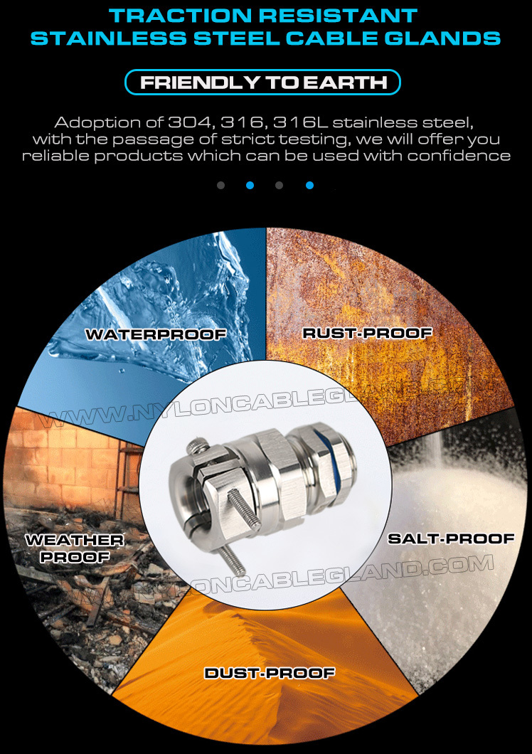| Materials: | Stainless steel type 304, 316 or 316L for locknut, sealing nut and gland body |